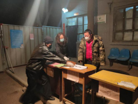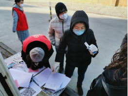 图苏布德玛对进出小区人员摸查登记(中间前一)