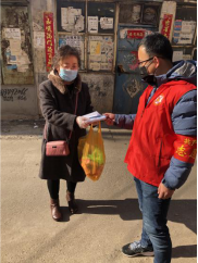 图胡学伟为小区居民发放防疫宣传手册(右一)