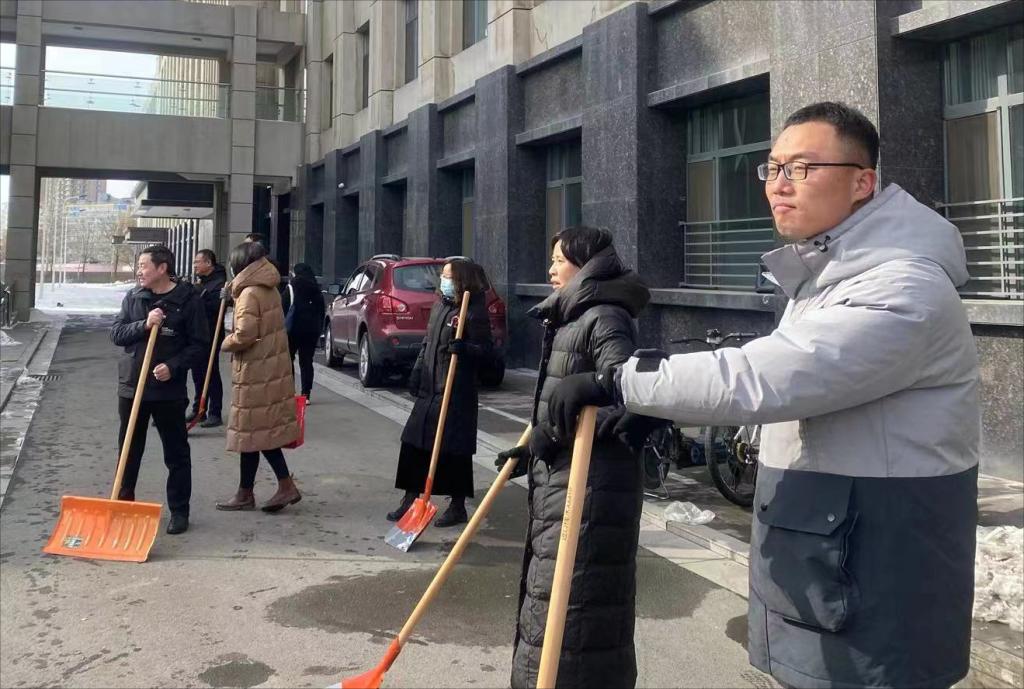 2024年2月22日下午,公共管理学院14名教师在校院两级工会的号召下进行了一次校内积雪大扫除活动,为即将开学的学生们清扫一条可供其上下课的安全道路,同时也为勤学楼工作教职工的行走安全提供保障。